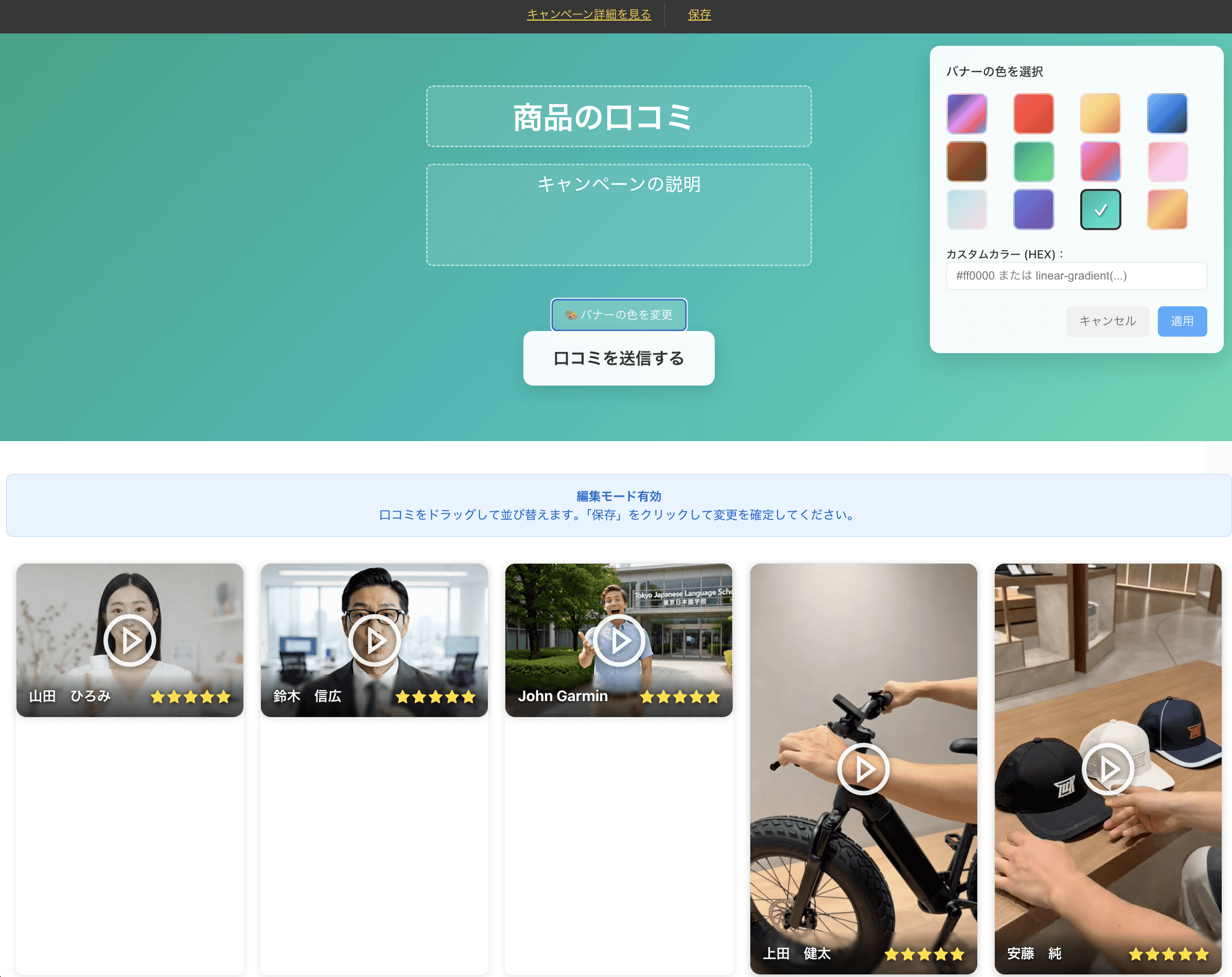 もしくは口コミを自分のページに簡単に追加で来ます。